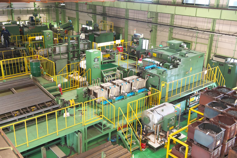 最新鋭の設備が整っているわけではありません。むしろ驚くほど古い設備を大切にメンテナンスを重ね使い続けています。例えば、日本で作られた最初の熱間鍛造機が40年以上整備を重ね現役で動いており、今でも製造の要となっています。メンテナンスには想像以上の手間がかかりますが、最新の鍛造機と見比べても見劣りの無い外観となっています。鍛造機の製造元である株式会社阪村機械製作所・株式会社阪村ホットアートの適切で細やかなメンテナンスの賜物でもあり、サカムラグループの強みです。